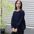 パールネックギャザーペプラムブラウス(a52-009)