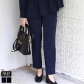 ウエスト後ろゴム仕様、ストレッチのきいたノンストレスな履き心地を実現。