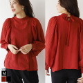 程よいシアー感とベロア起毛のストライプがノーブル感のあるブラウス。