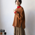 首元と袖元がバイカラーのニットでドッキングされたプルオーバー。