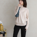カシミヤ混袖バイカラーハイネックニット(KY-29543)