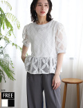 フラワーメッシュレースペプラムブラウス(KY-4297)