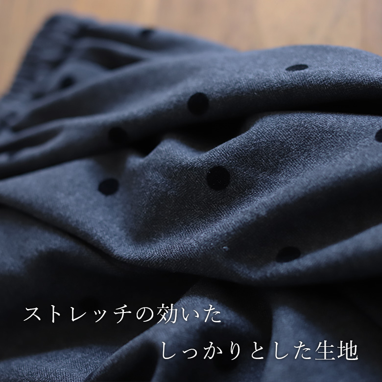 肉感のあるストレッチの効いた生地にフロッキードットがオシャレなスカート。