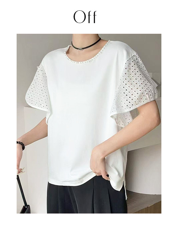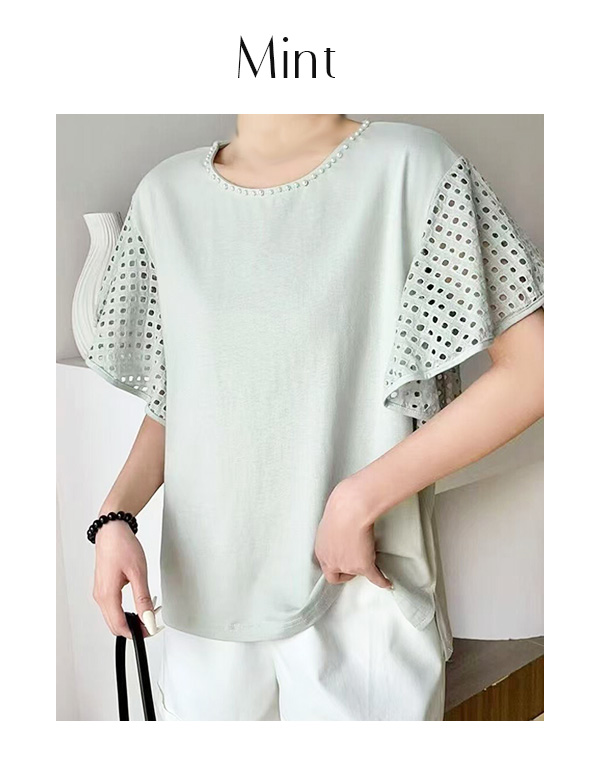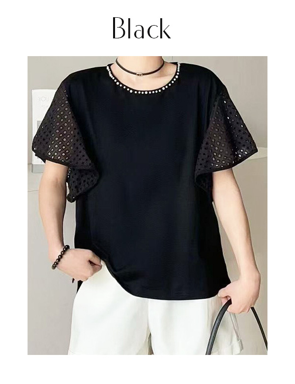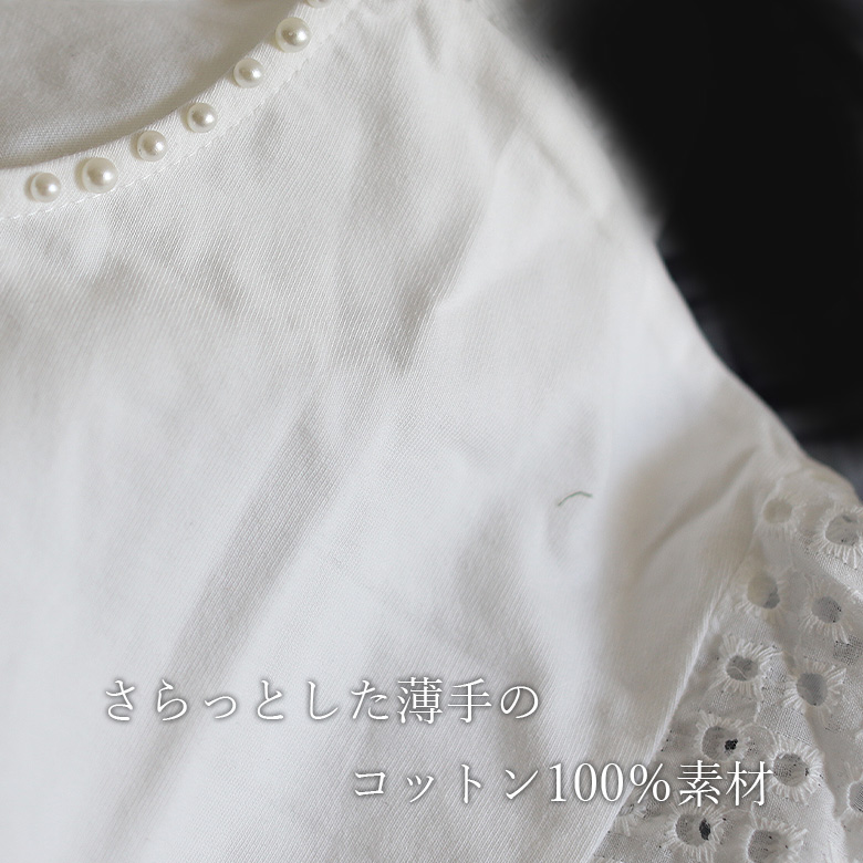 プチパールコットンレーススリーブトップス(151-4199)
