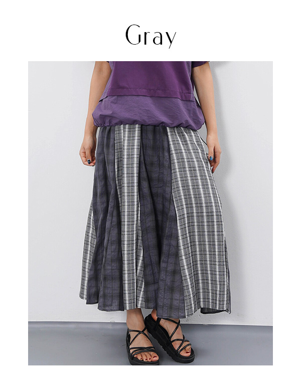 | アシンメトリーパネルチェックロングスカート(63-4072) |