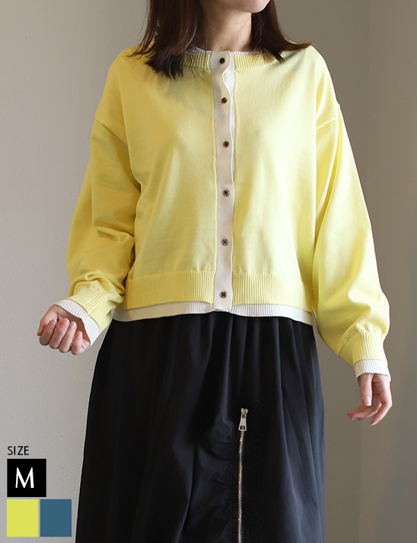 レイヤード風バイカラーニットカーディガン
