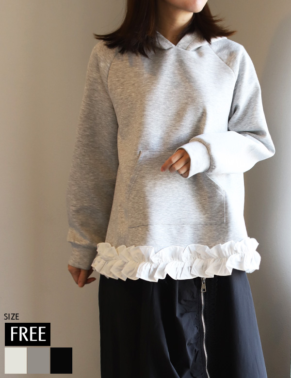 裾フリルダンボールフーディトップス