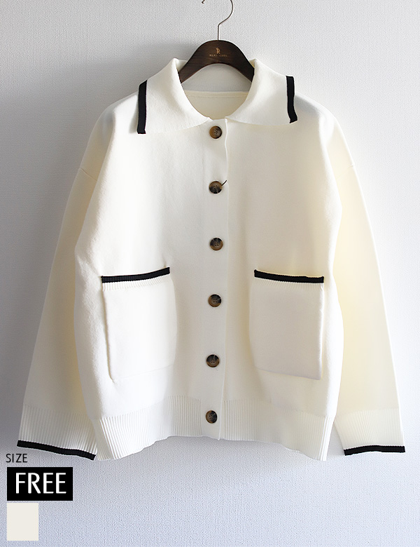 ウォッシャブルバイカラーラインスポンジニットカーディガン