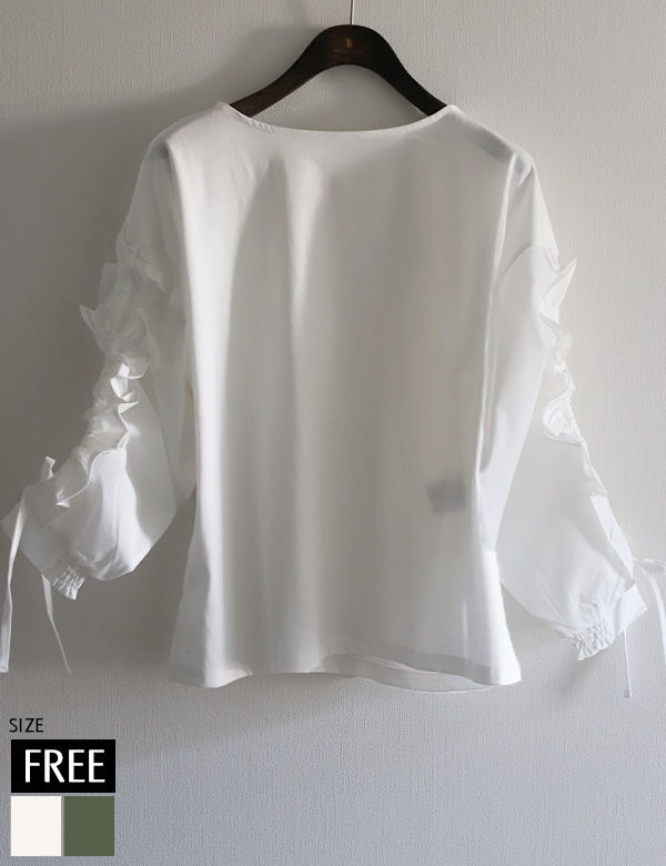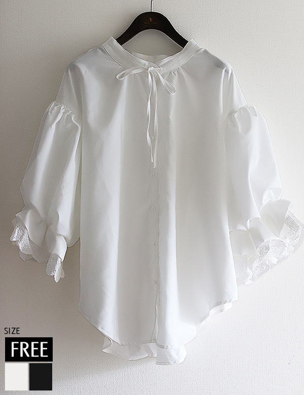 レースボリュームスリーブリボンブラウス