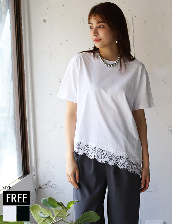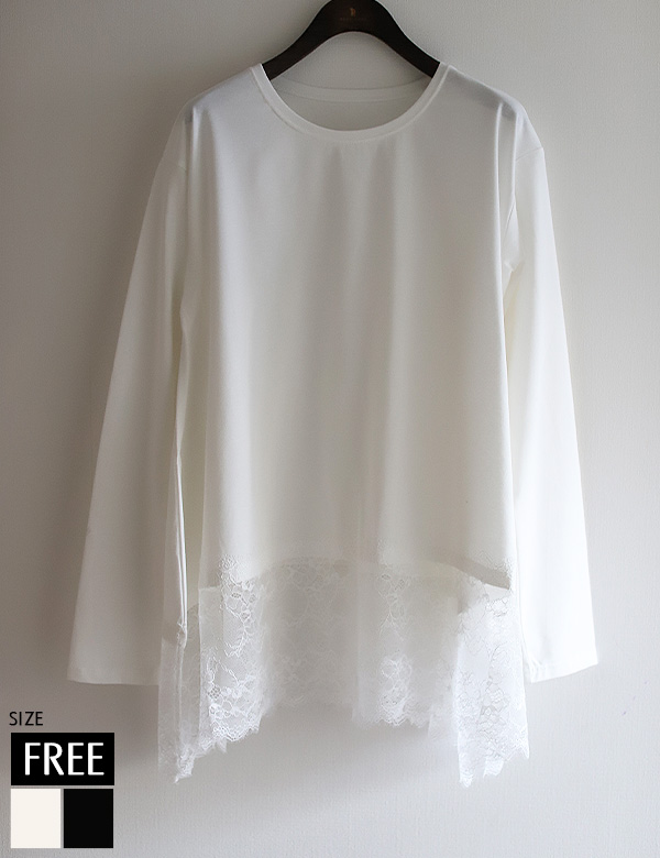 裾レースイレヘムロンTトップス