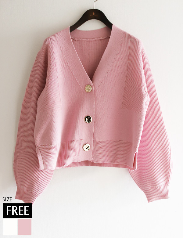 BIGボタンVネックスポンジニットカーディガン