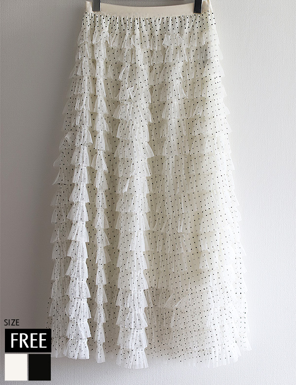 ドットチュールフリルスカート