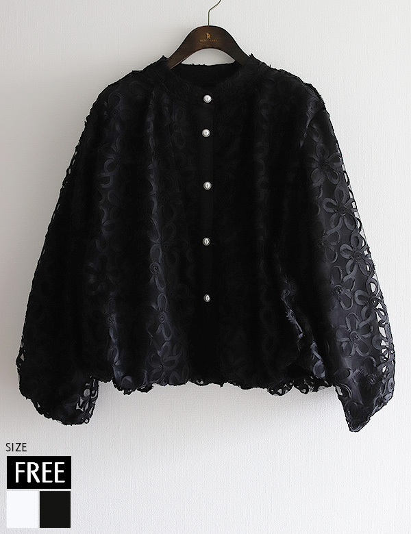 カットレースフリルカラーブラウス