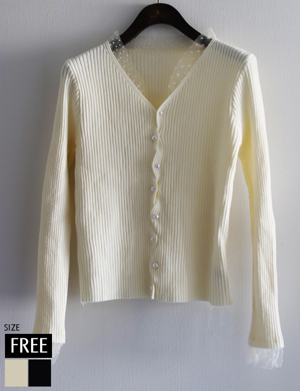 ドットチュールリブニットカーディガン