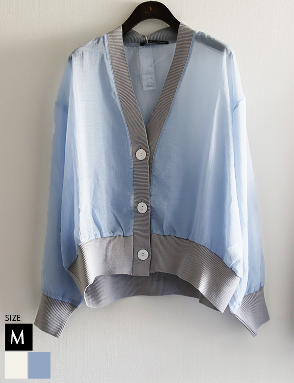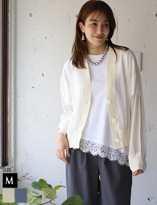 ニット切り替えシアーカーディガン
