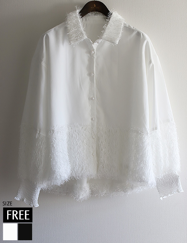 フリンジデザイン切り替えボリュムスリーブブラウス
