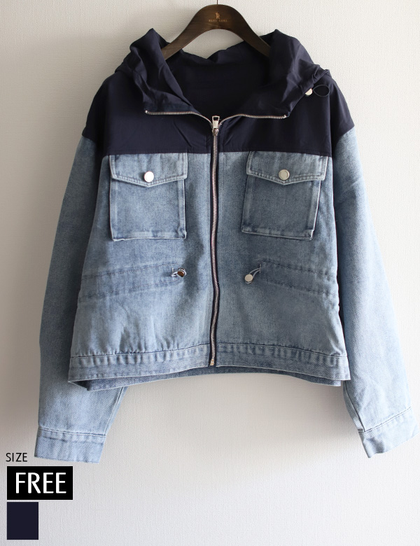 異素材切り替えフーディデニムジャケット