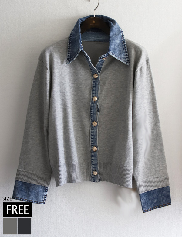 デニムレイヤード風ニットカーディガン