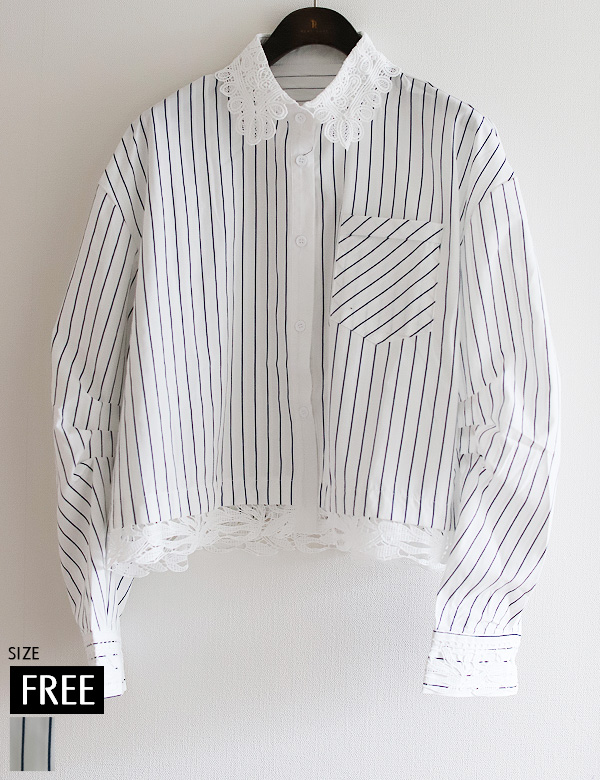 レースデザインストライプブラウス