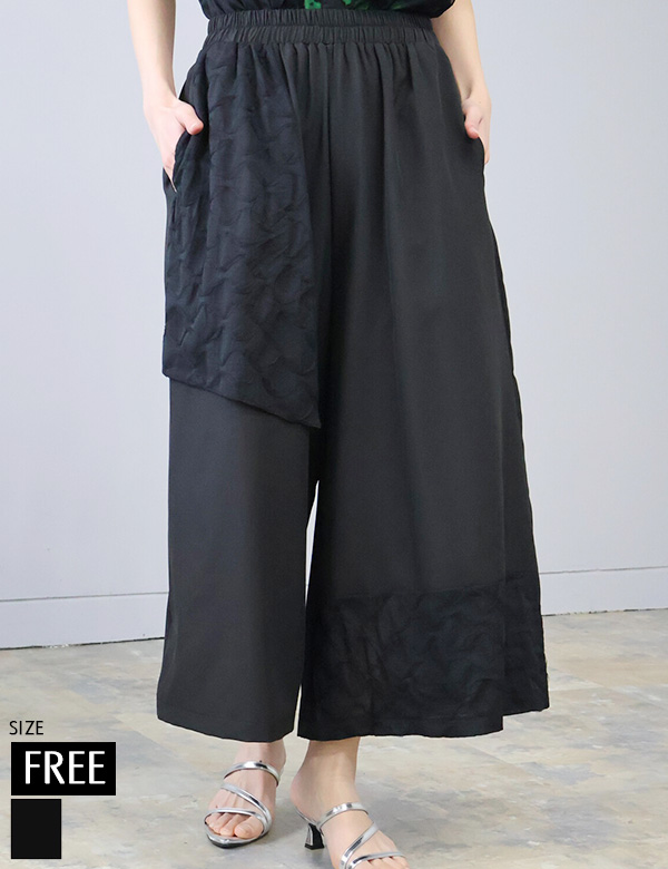 異素材アシンメトリーワイドパンツ