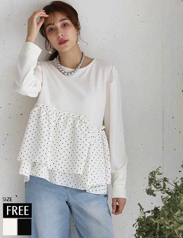 ドットフリル切替えトップス