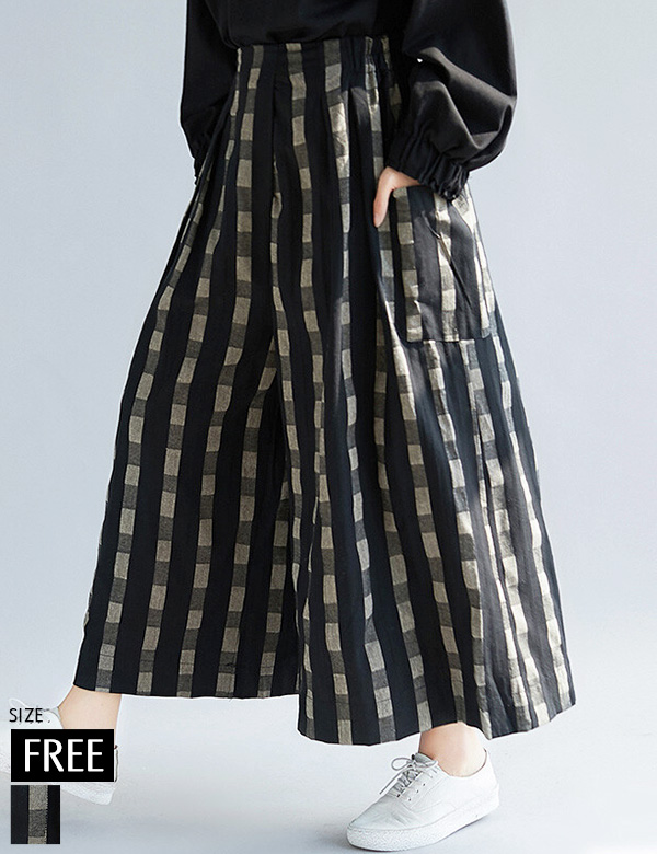 ブロックチェックコットンロングワイドパンツ