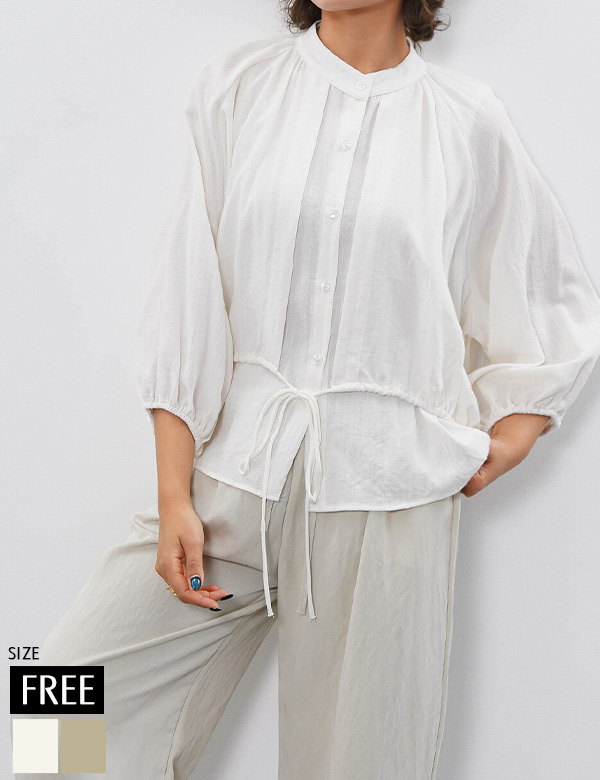 リボンギャザースリーブトップス