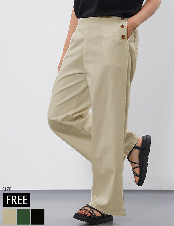 コットンストレッチサイドボタンパンツ